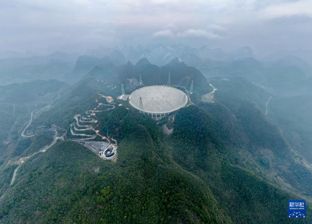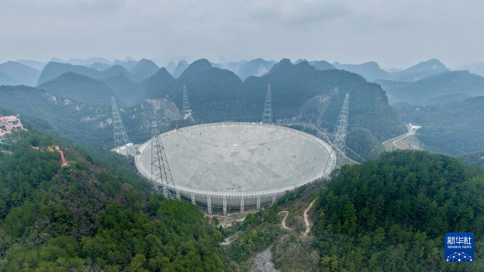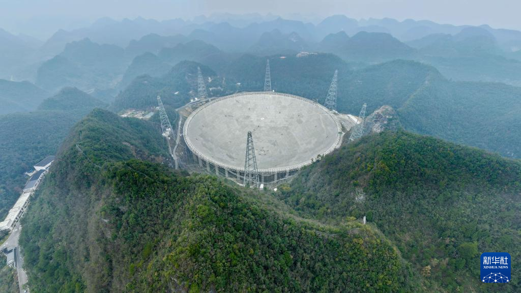 1月16日拍攝的“中國天眼”(無人機全景照片,維護保養期間拍攝)。
